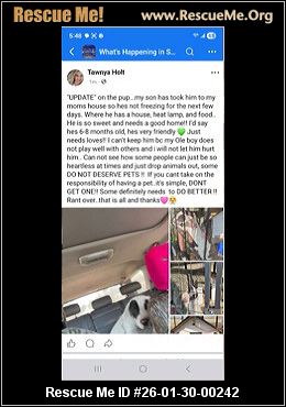 Read more »26-01-26-00308D041Junior (m)(male)Bulldog mixChambers County, Valley, ALID: 26-01-26-00308